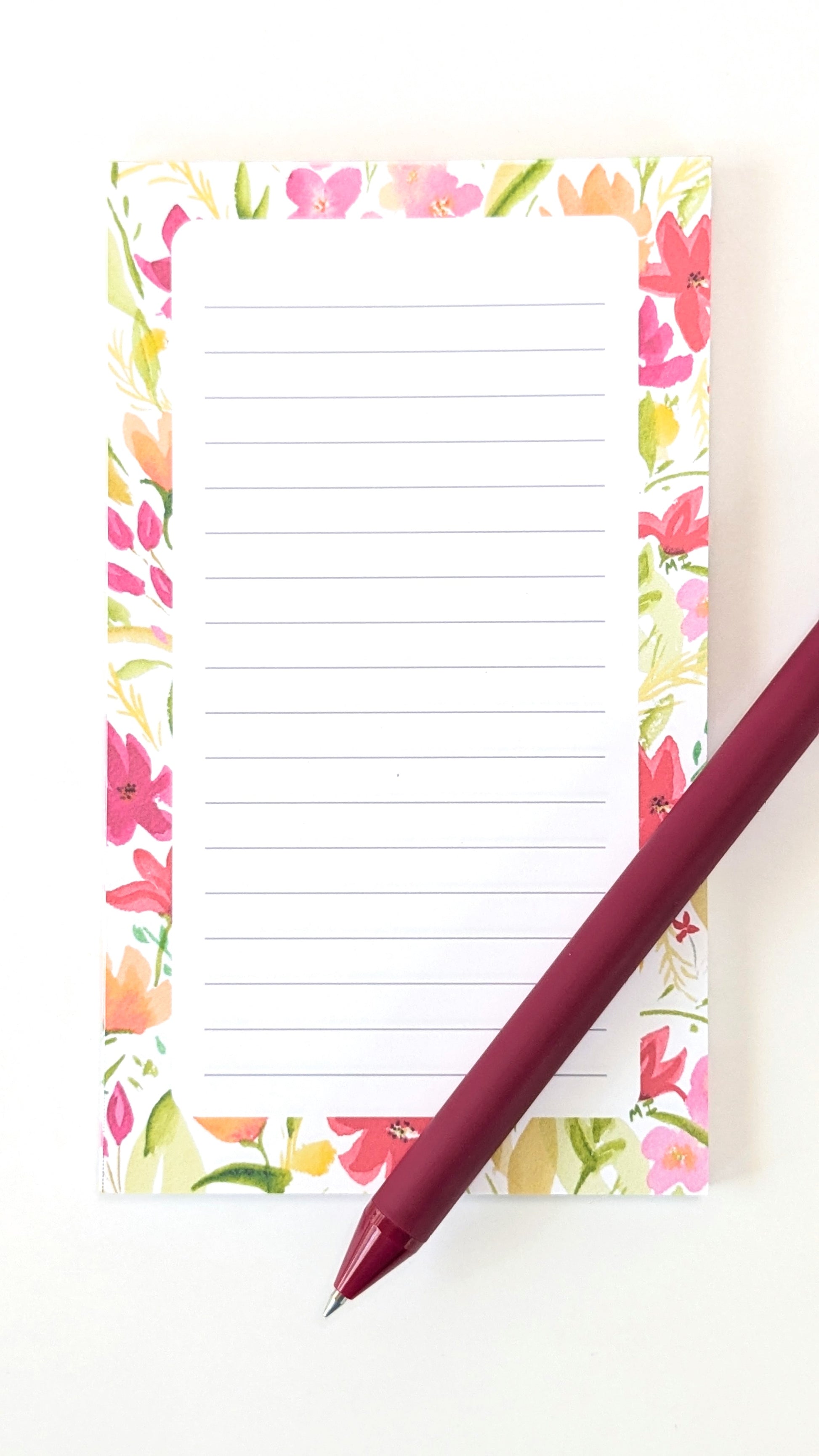 Red florals notepad, 30 lined pages